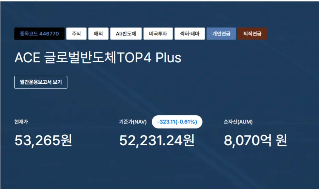 ACE 글로벌반도체TOP4의 정확한 실시간 수익률과 기업들의 세부 재무 정보는 금융감독원 전자공시시스템(DART)에서 교차 검증하는 습관을 들이는 것이 좋습니다.